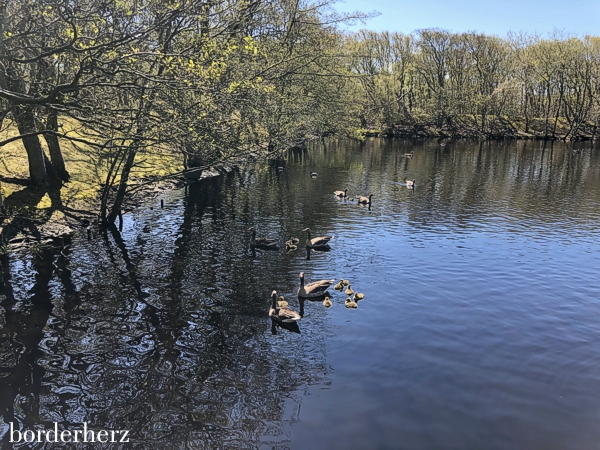 An der Amrumer Vogelkoje leben und rasten neben Enten auch Gänse und Möwen. Fröhliches Geschnatter von den kleinen Jungenten und Gänsen begleitet uns des Weges. Dicke Fische ziehen durch das Wasser.